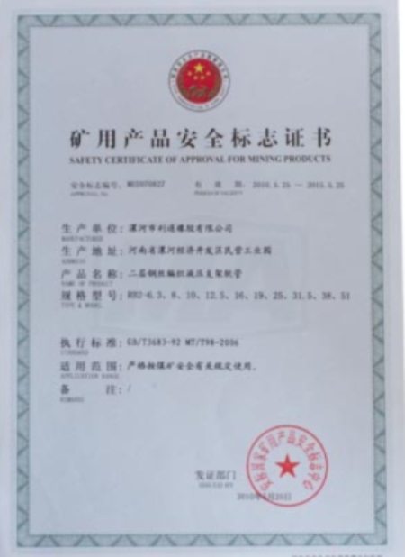 Safety Certificate for Mining Products