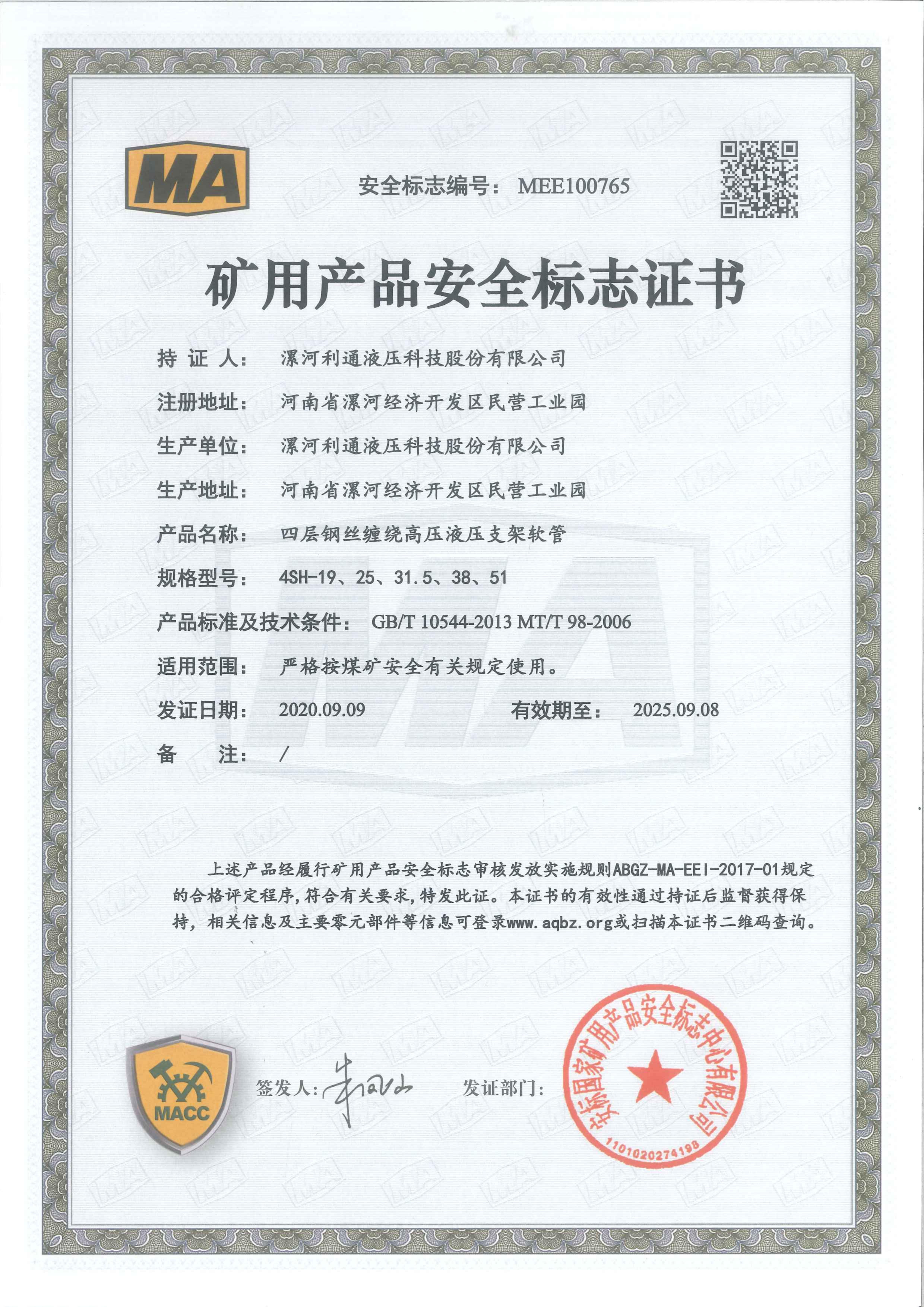 4SP-63、76Product Mining Safety Certificate