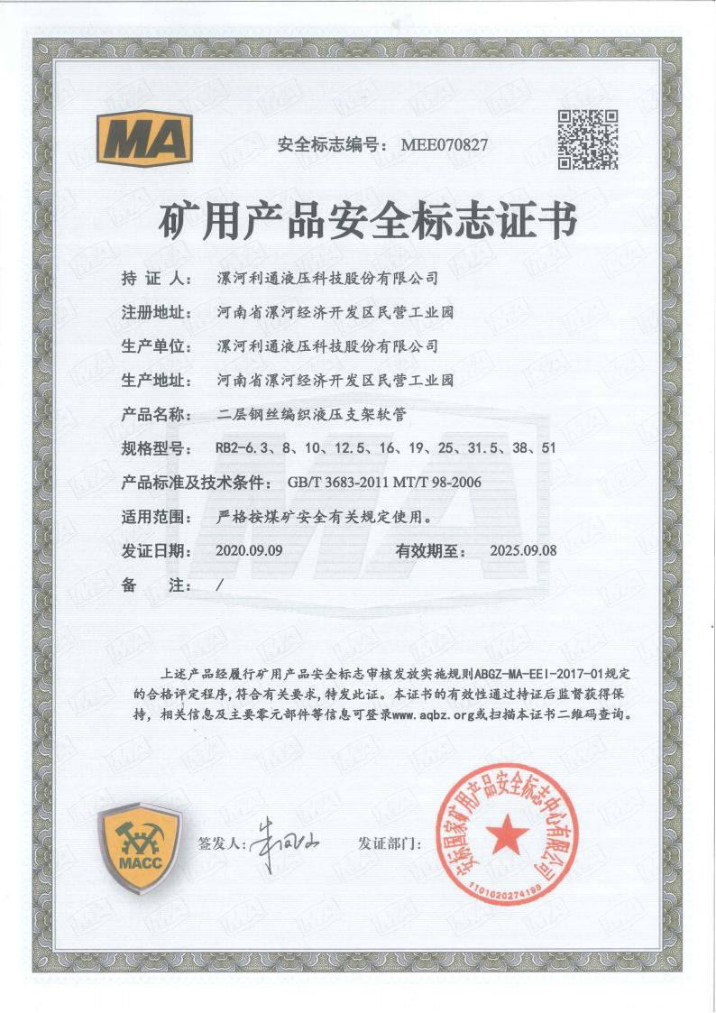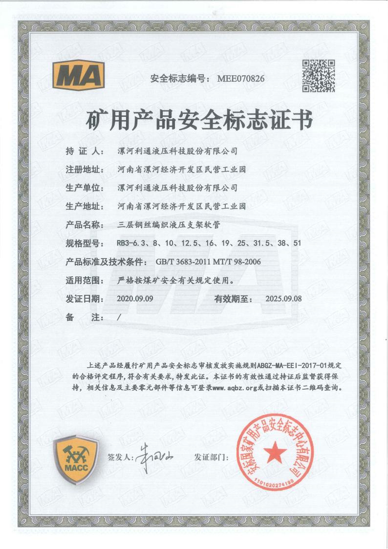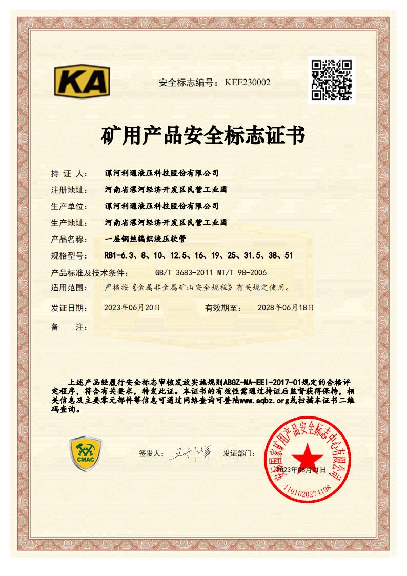 RB1-6.3~51 Product Mining Safety Certificate