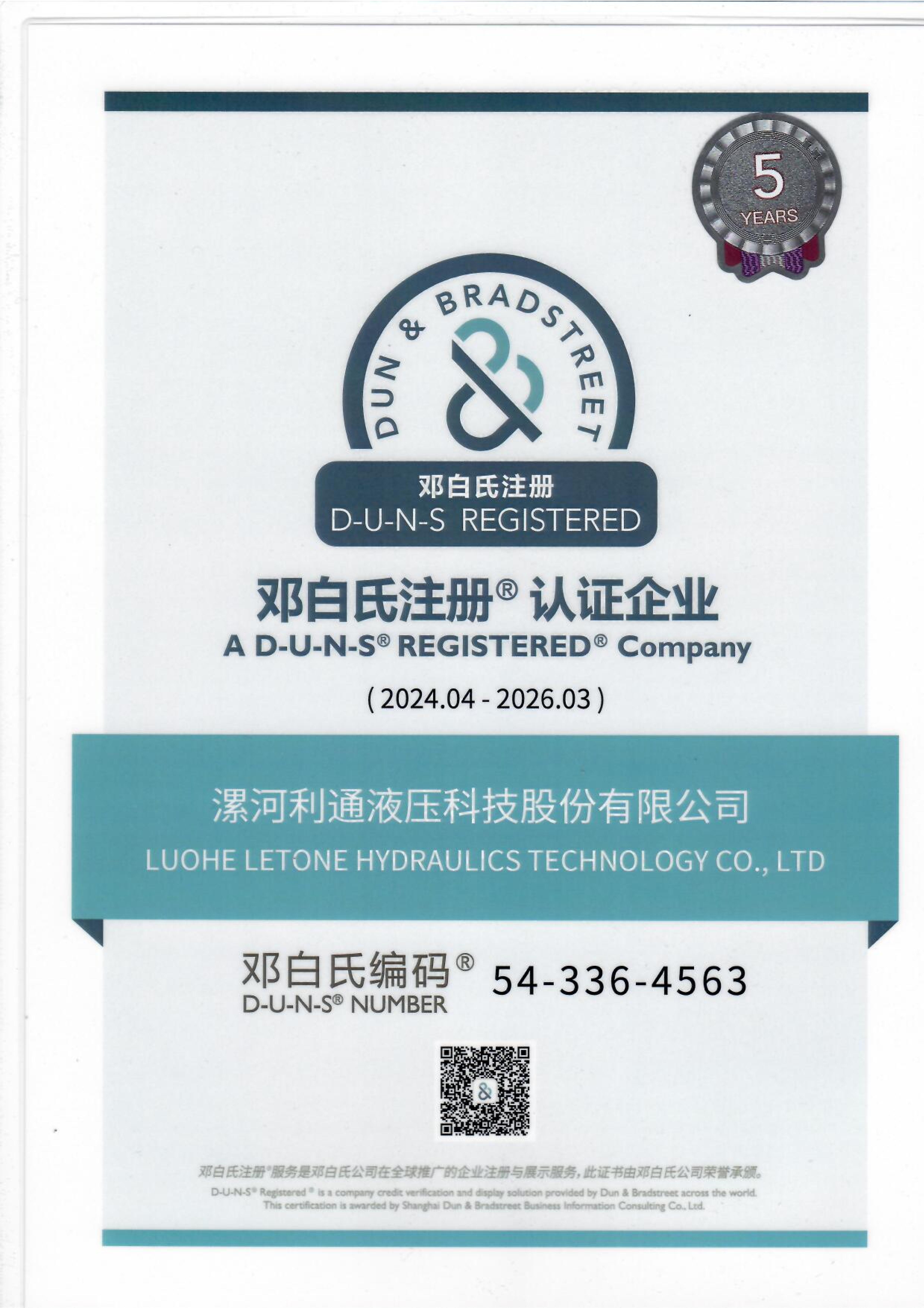 Dun & Bradstreet Certificate