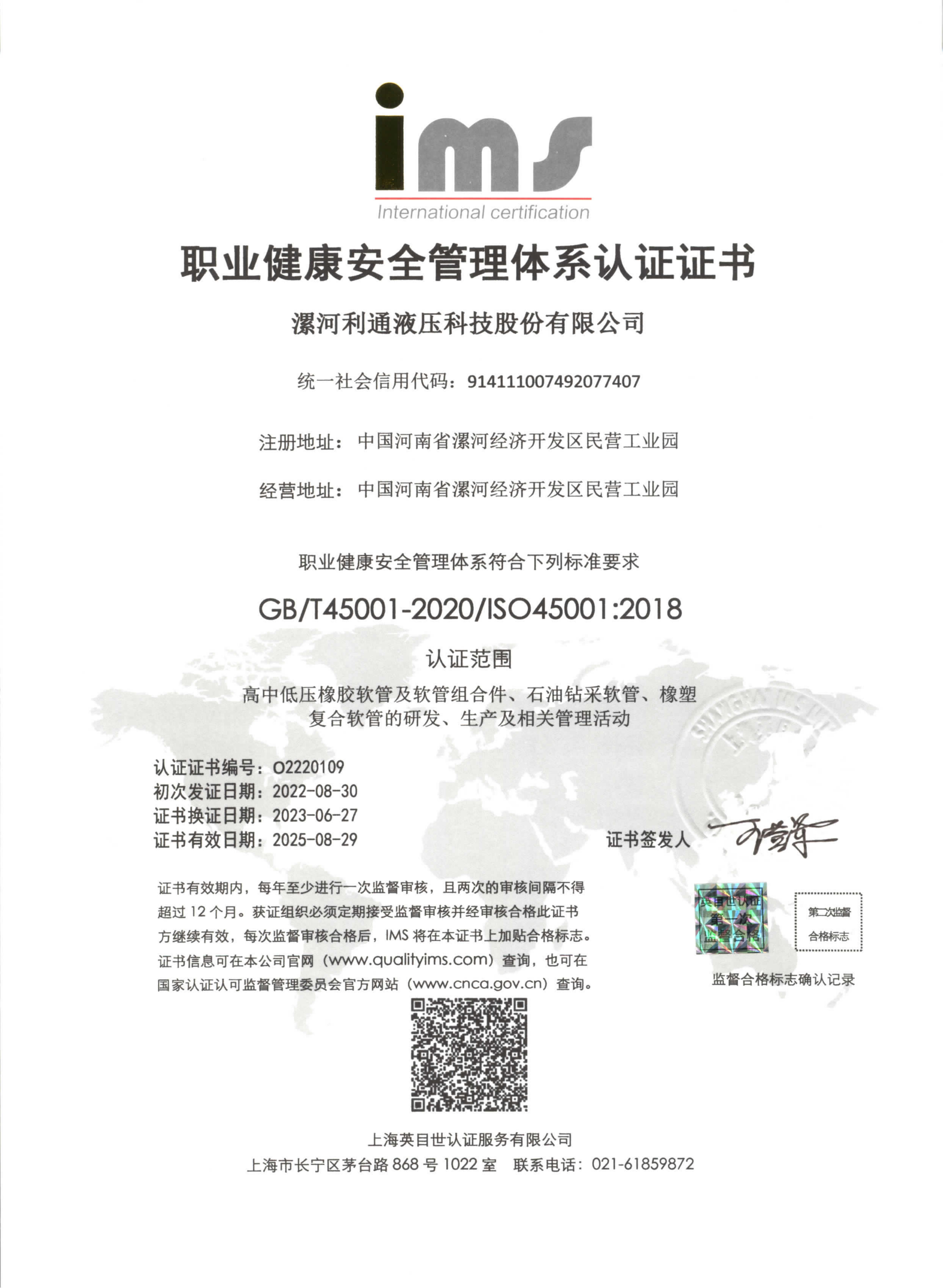 Occupational Health and Safety Management System Certificate