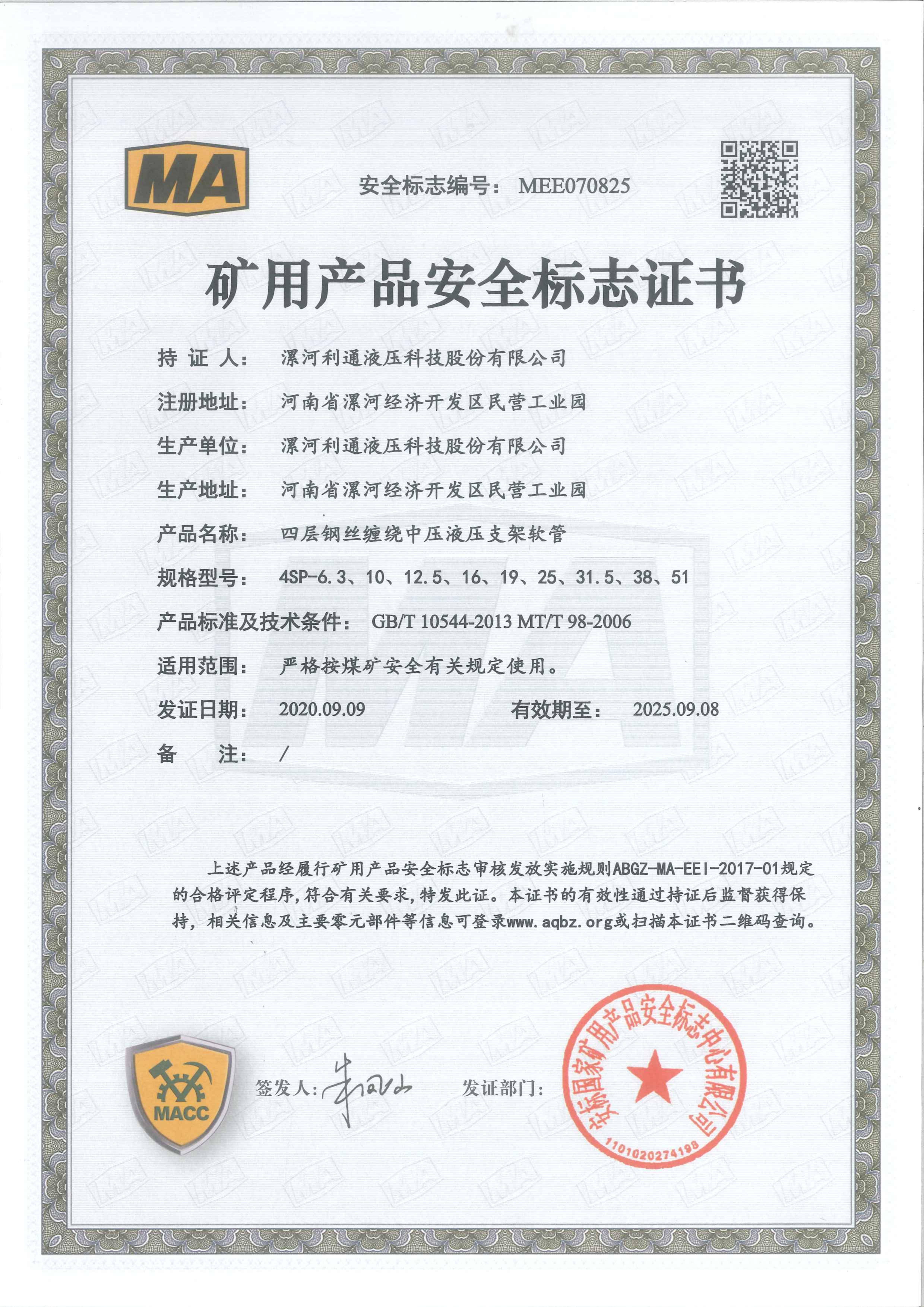4SP-6.3-51 Product Coal Mine Safety Certificate