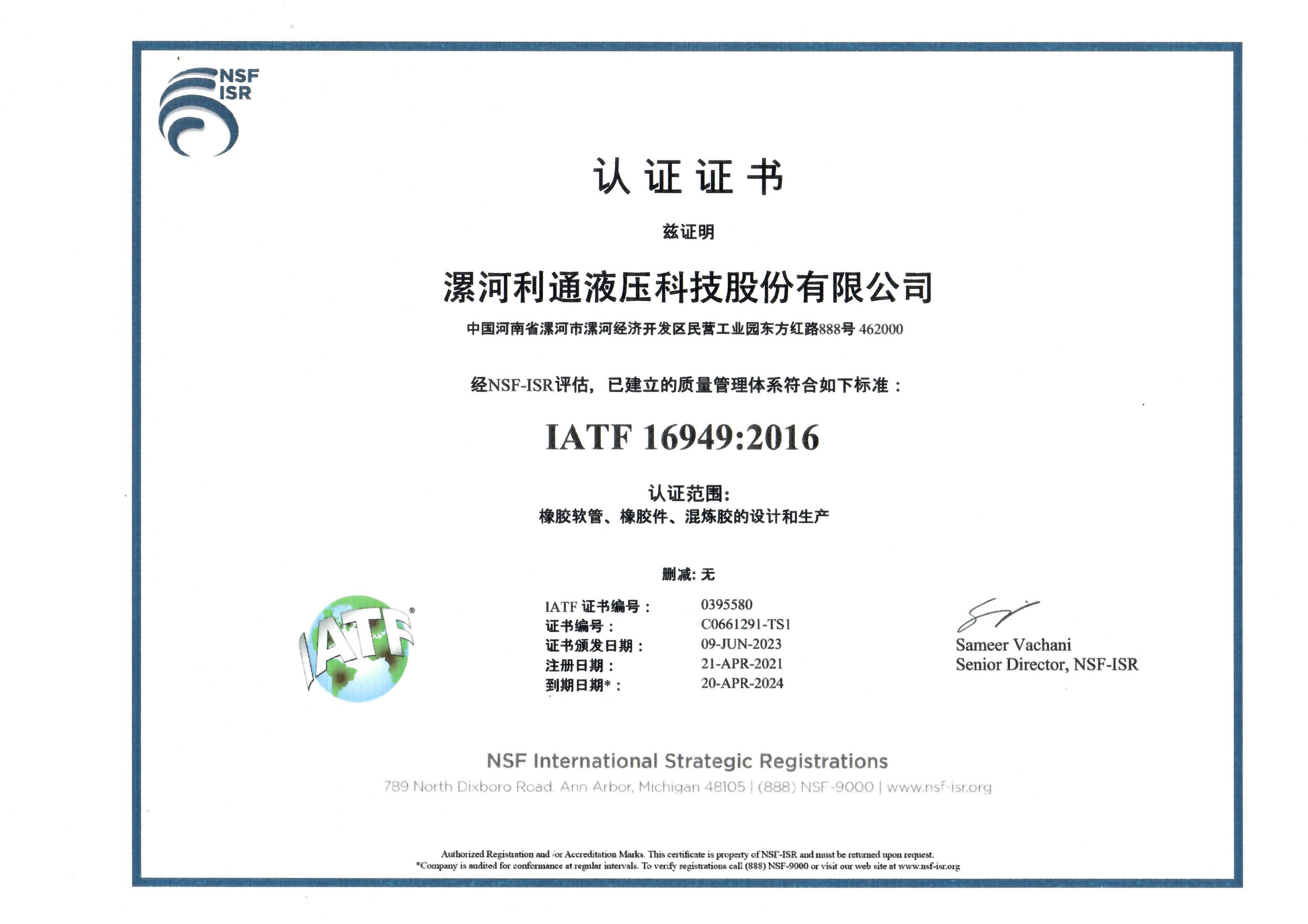 Automotive Quality Management System Certification Certificate