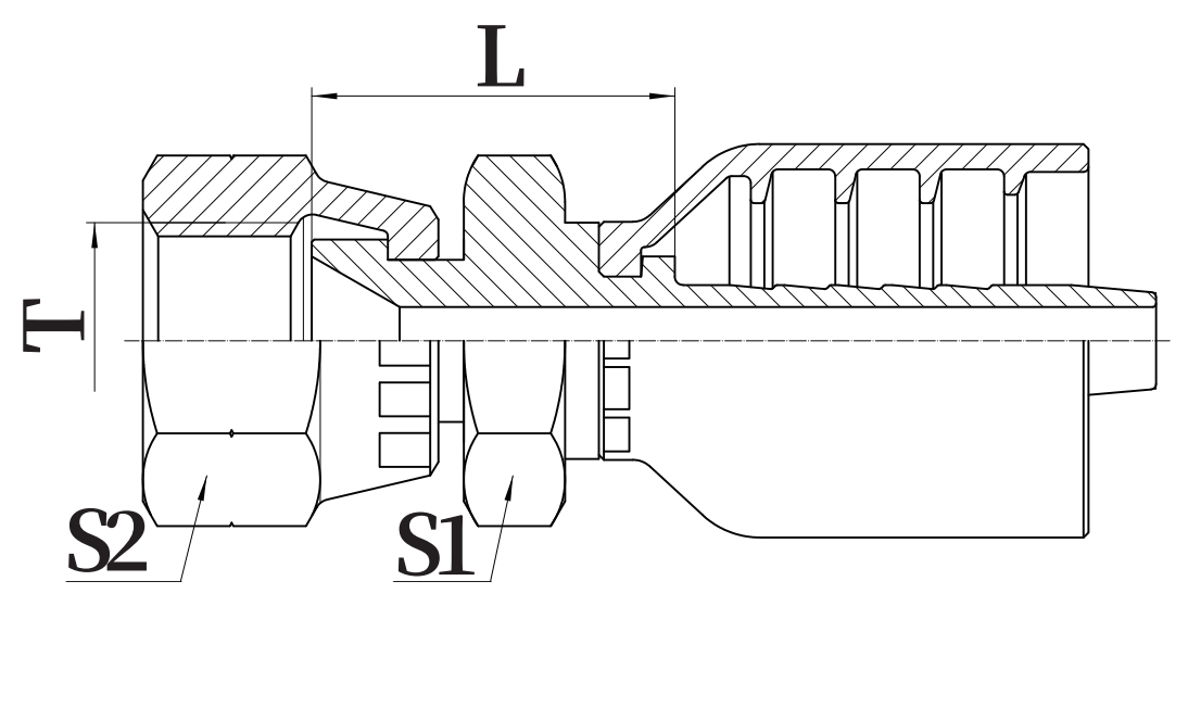 | PART NO. | THREAD T | HOSE BORE | DIMENSIONS | |||